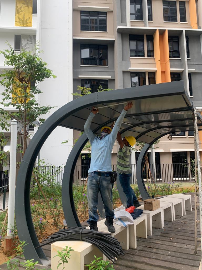 Steel structure, Alum cladding, Alum perforated panel and roof & link bridge alum trellis